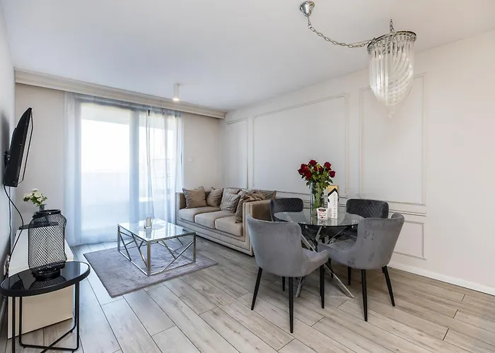 Pełnowymiarowa kuchnia w Apartament Riva Cracovia obejmuje piekarnik i zmywarkę do naczyń. Od tego apartamentu do przystanku autobusowego Bałuckiego w odległości krótkiego spaceru.